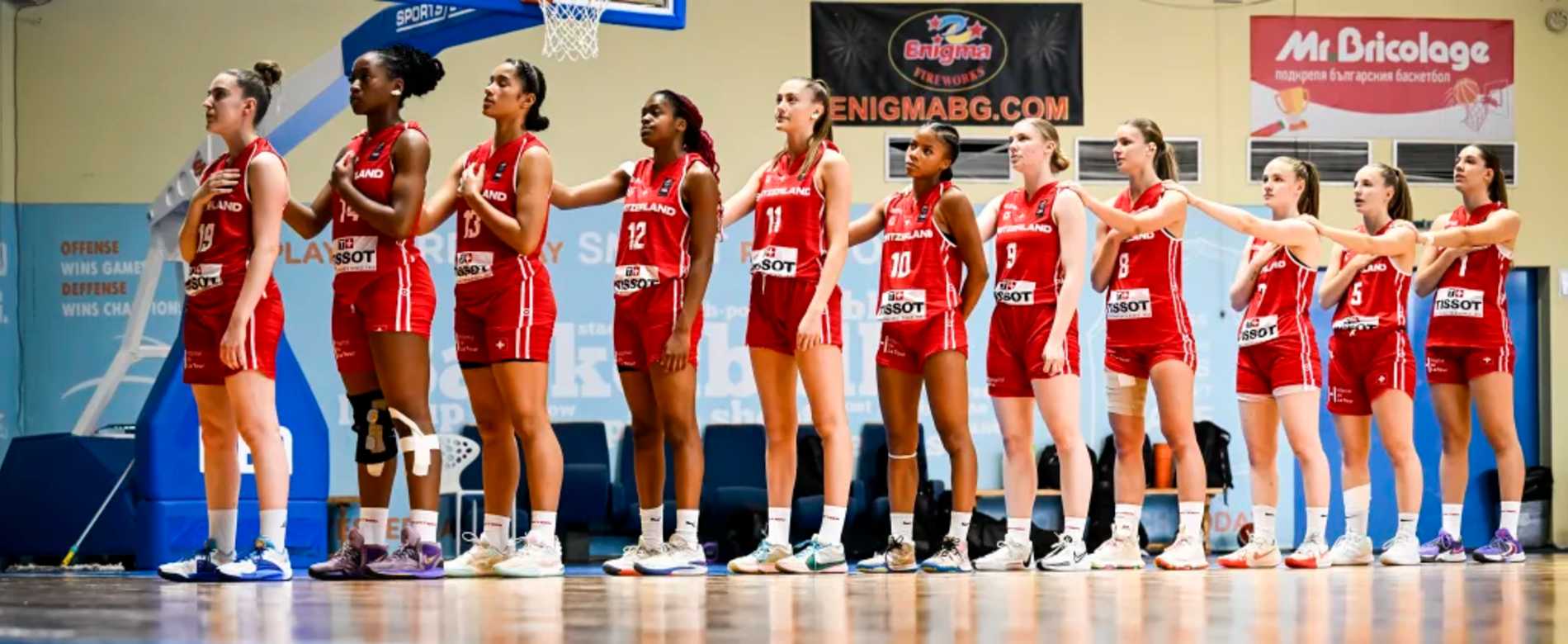 Zwei Dreipunktwürfe von Indira Vilolo Dos Santos und Loreen Bukhalter in den letzten zwei Minuten des Spiels sicherten der Schweiz den Vorsprung und den ersten Sieg im Turnier (72:66).