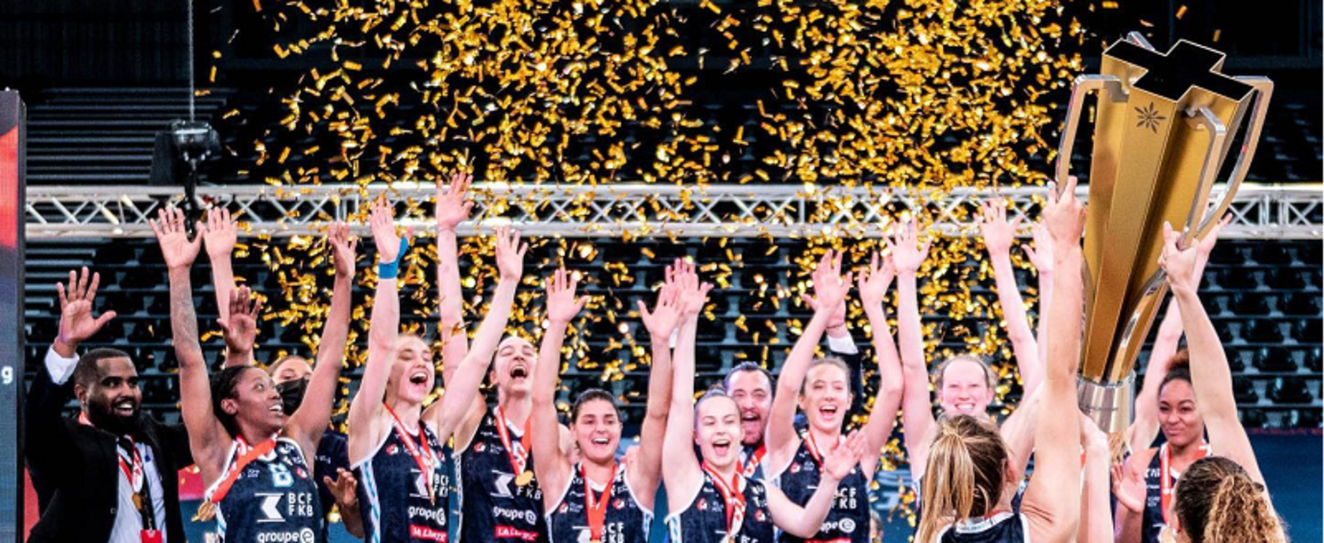 Vierter Erfolg im Finale des Patrick Baumann Swiss Cups für den BCF Elfic Fribourg, der sich gegen einen Genève Elite Basket, der vor allem im Innenraum nicht mithalten konnte, sehr deutlich durchsetzte. Eine aussergewöhnliche Saison für die Freiburger Mannschaft, die alle vier anstehenden Titel gewann, ein nie zuvor erreichtes Kunststück, und noch dazu ohne ein einziges Spiel zu verlieren. Ein Rekord von 34 Siegen auf dem nationalen Territorium von 34 gespielten Spielen, was seine ungeteilte Dominanz bezeichnet. Ein erster Patrick Baumann Swiss Cup für Trainer Romain Gaspoz. Dazu kommt noch eine bemerkenswerte Reise im FIBA EuroCup Women, wo die Freiburgerinnen das Viertelfinale erreichten. Genève Elite Basket begann das Spiel sehr gut und war offensiv, wie Emma Chardon, gegen eine Freiburger Mannschaft, die defensiv nicht ganz auf der Höhe war. Nach und nach gelang es den Freiburgerinnen jedoch, mehr Intensität in ihr Spiel zu bringen und vor allem den Ball nach innen zu bringen, ein Sektor, in dem wir wussten, dass die Genferinnen im Rückstand waren. Ständig musste die Mannschaft von Antoine Mantey auf der anderen Seite aushelfen und öffnete sich so für einfache Schüsse der Freiburgerinnen. 30:44 zur Pause. Wie so oft in dieser Saison war Elfic bei der Rückkehr aus der Garderobe sehr effizient gegen Genève, die nach fast 4 Wochen ohne Wettkampf in allen Belangen unrhythmisch waren und eine sehr hohe Anzahl an zweiten Wurfchancen kassierten. Ein Zwischenstand von 1 zu 18 zu Beginn des 3. Viertels, der das Schicksal dieses Finales besiegelte. Ein Sieg am Ende auf der Marke von 94-51 zu Gunsten von BCF Elfic Fribourg, die unverschämt dominiert die Rebounding-Sektor mit 59 Würfe gegen 28 und war auch in der Lage, auf eine hervorragende kollektive mit nicht weniger als 27 Assists gegen nur 9 auf die Bewohner der École du Sapay verlassen. Für die Freiburger Mannschaft waren die wichtigsten Highlights Marielle Girouds 17 Pkt, 12 Rbds, 5 Assists, Alexis Jones' 21 Pkt, 9 Rbds, 5 Assists, 2 Blocks und Abigail Fogg's 18 Pkt, 4 Rbds. Erwähnung auch für Nancy Fora, 10 Pkt, 5 Rbds, 3 Ass. Für Geneva Elite Basket: 12 Pkt., 4 Rbd. von Kristen Spolyar und 13 Pkt., 4 Rbd. von Emma Chardon. Die MVP-Titel wurden an Alexis Jones für Elfic und an Emma Chardon für Genève Elite vergeben.
