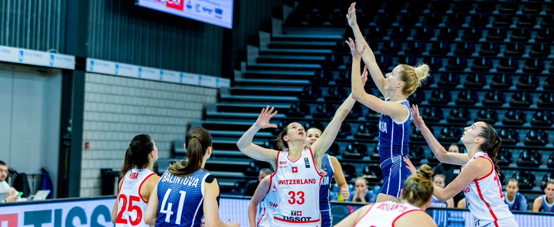 La nostra nazionale si è inchinata alla Slovacchia questa domenica 14 novembre al Saint-Léonard, ma questo non senza offrire una buona prova contro una nazione che ha partecipato all’ultimo EuroBasket Women. Le giocatrici di Domenico Marcario, trascinate da un’incredibile Evita Herminjard, hanno tenuto botta fino alla pausa prima di imbattersi in un inizio di secondo tempo complicato dove le slovacche hanno preso le distanze. Le svizzere hanno però lottato fino alla fine, facendo prova di un buon spirito di squadra e capitolando solamente a 3 minuti dal termine. Le percentuali da 2 punti sono costate caro (14 su 46 contro 18 su 43) e anche quelle dal tiro libero (4 su 13 contro 14 su 16). Difensivamente sono state all’altezza, ma offensivamente sono mancate delle alternative capaci di essere pericolose oltre ad Evita Herminjard, autrice di 29 pts. L’inizio di partita è stato in favore delle slovacche (4 a 10 al sesto minuto), ma le svizzere hanno reagito subito con un parziale di 10 a 0 (14 a 10 all’ottavo minuto). Il time-out chiamato dal coach slovacco ha avuto i suoi benefici ed il primo quarto si è chiuso sul 14 a 16. Le nostre giocatrici hanno mantenuto una buona qualità di gioco per tutto il secondo quarto, terminando il primo tempo in ritardo di due lunghezze (26 a 28). Evita Herminjard aveva 22 punti a referto, per dare un’idea della sua performance. Inizio di secondo tempo difficile per le ragazze di Domenico Marcario, che hanno incassato un parziale di 0 a 9 finendo sotto di 11 lunghezze al 22esimo (26 a 37). Non hanno comunque mollato la presa e al 32esimo sono tornate sul -4 grazie ad una tripla di Eva Ruga (42 a 46). Le slovacche hanno reagito ma le svizzere sono comunque tornate a 6 lunghezze di distanza in due riprese, prima di capitolare definitivamente negli ultimi minuti ed infine perdere per 50 a 65. Come detto, prova maiuscola di Evita Herminjard con 29 pts, 8 rbds, 3 ass e 2 stl. Segnaliamo anche i 7 pts e 3 rbds di Eva Ruga ed i 13 rimbalzi catturati da Flora Stoianov. Buona gara collettiva per la Slovacchia, con 6 giocatrici tra 8 a 21 di valutazione. 16 pts, 9 rbds e 3 stl per Ivana Jakubcova. La prossima finestra internazionale è prevista in novembre 2022, dove giocheremo contro l’Italia ed il Lussemburgo.