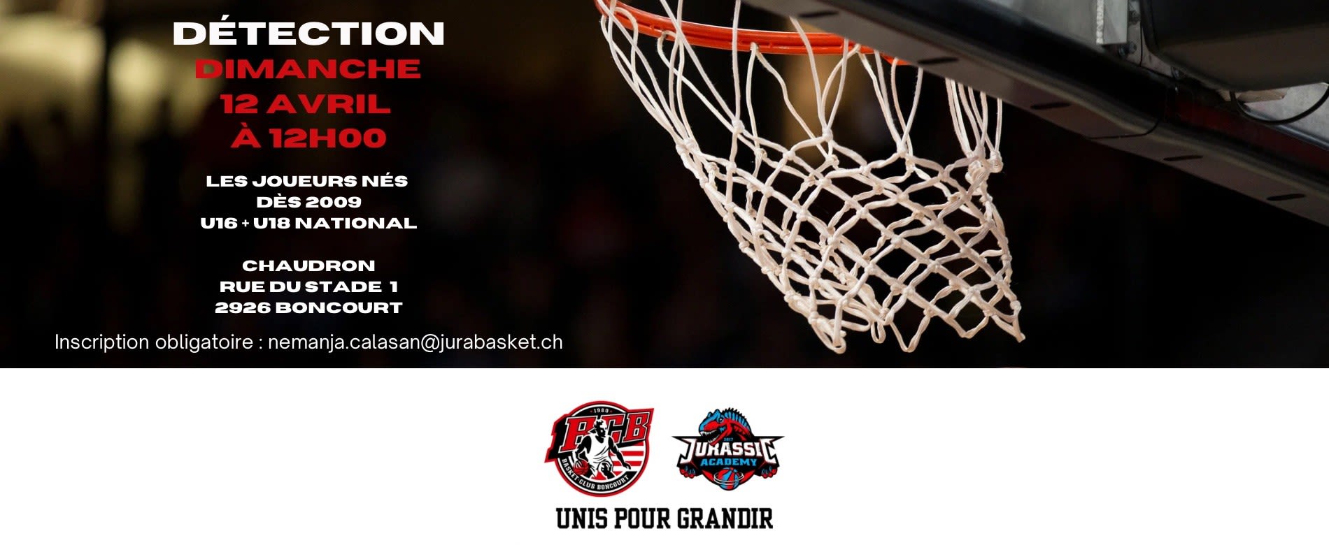 Pour participer, merci de vous inscrire à l’adresse suivante : nemanja.calasan@jurabasket.ch