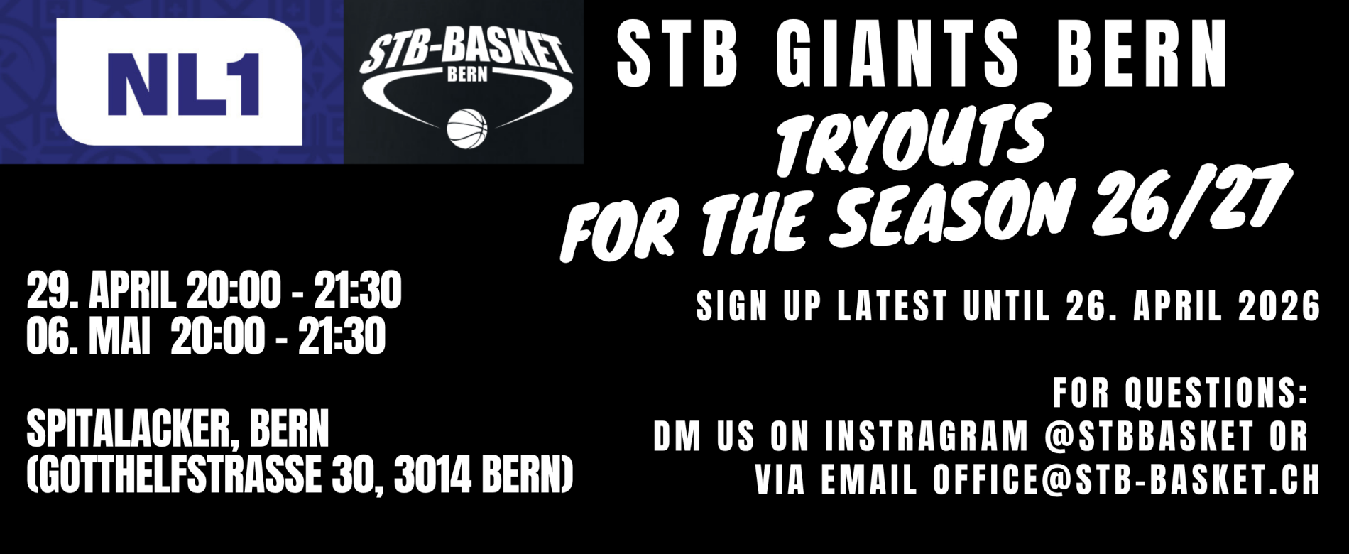 Les STB Giants de Berne organisent des sélections ouvertes en avril et mai et recherchent des joueurs engagés et passionnés, prêts à concourir, à progresser et à s’inscrire dans un projet collectif ambitieux.